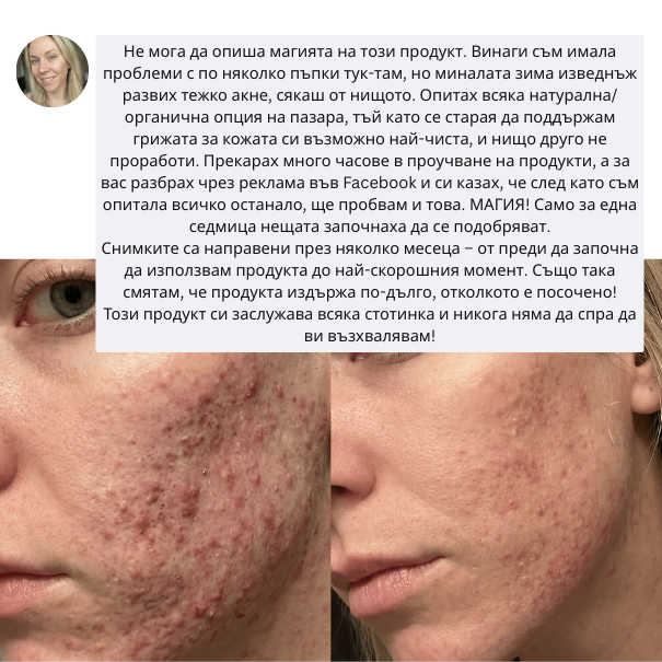 След две седмици редовна употреба кожата се усеща по-мека, по-еластична и видимо по-спокойна. Сухите участъци са по-малко изразени, зачервяването отшумява по-бързо, а усещането за опъване изчезва. Кожата е добре хидратирана и защитена, без да е натоварена.